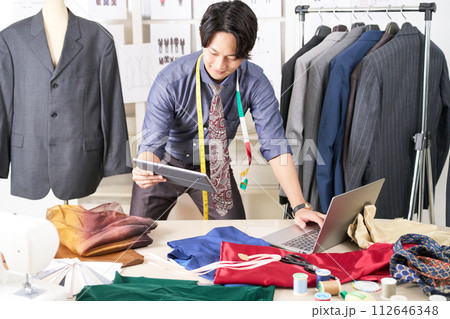 タブレットを見ながら仕事をする若い服飾デザイナー