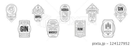 Alcohol labels set, retro alcohol industry monochrome emblem vector Illustration on a white