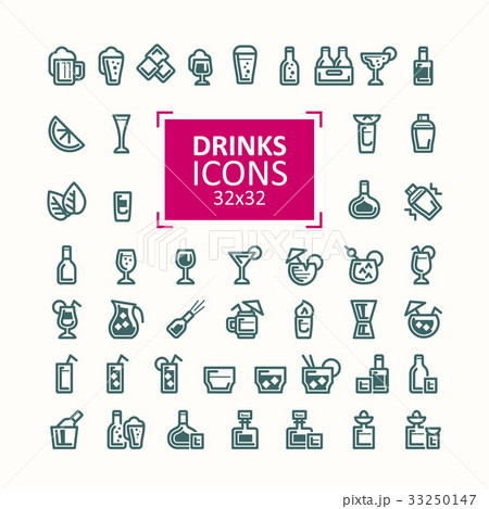 Icon set - glass and beverage outline stroke color