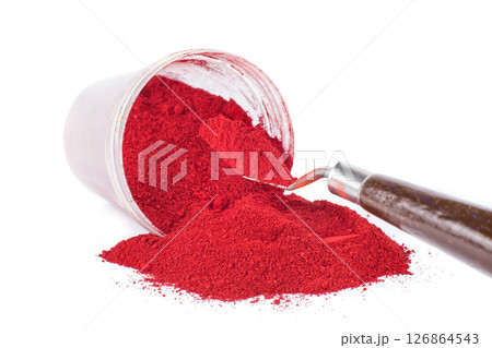 Bright Red Pigment Spilled From Container With a Spatula