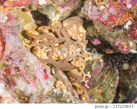 妖しく美しい大きなテヅルモヅル(ヒトデ科)。 触手がうねうね動く。伊豆半島賀茂郡南伊豆町中木ヒリゾ浜