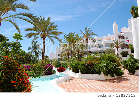 Swimming pool and building of luxury hotel, Tenerife island, Spa