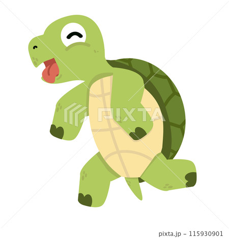 A cartoon turtle is running and tired