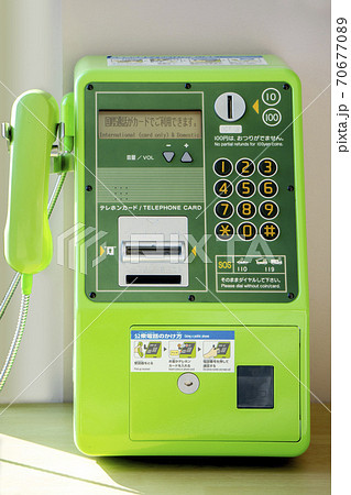 緑のボタン式公衆電話イメージ無料フリー