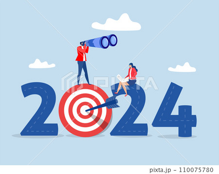 Businessman analyst use telescope on Year 2024 outlook for opportunity or new challenge ahead vision to make decision plan future concept vector illustrator