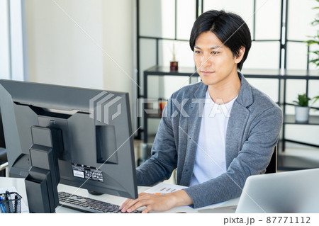 テレワーク 男性 パソコン ライフスタイル カジュアル