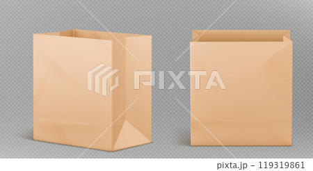 Eco friendly kraft paper bag and cup with takeaway food, reusable and recyclable packaging. Modern