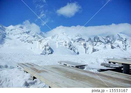 ディアヴォレッツァの雪山とテーブル