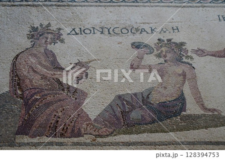 キプロス、パフォス、パフォス考古学公園、ディオニソスの館のモザイク、ディオニソスとイカリオス