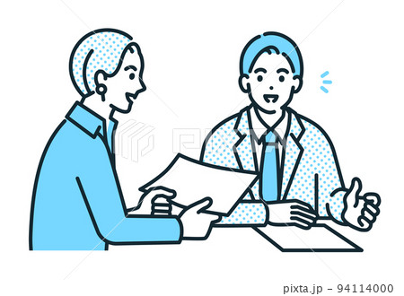 資料を確認しながら接客をするビジネスマンのイラスト素材。