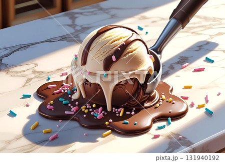 ディッシャーに乗った美味しそうなアイスクリームのイメージイラスト