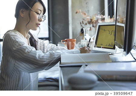 穏やかな日常 リラックスしながら仕事をする女性 デイ・トレーダー