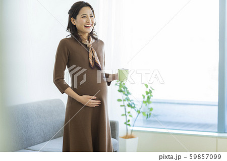 自宅でカフェインレスコーヒーを飲む高齢妊娠をした妊婦