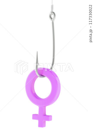 Fishing hook with pink female gender symbol, 3D rendering
