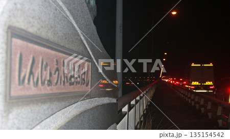 ①デコトラ祭典と国道17号上武国道(2025.12.31) 新上武大橋銘板と橋台 渋滞 群馬県太田市