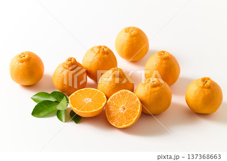 柑橘類の不知火デコポンのカット断面と一玉