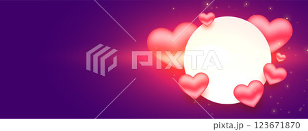 立体的な木製のピンクのハートを挟んだ赤いハートが並ぶバナー