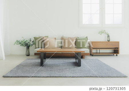 爽やかな光が差すリビングインテリア ホームオフィス・リモートワークの3Dレンダリンググラフィックス