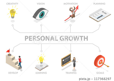3D Isometric Flat Illustration of Personal Growth, Self Development and Management