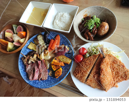 Plate set meal / グリル野菜と燻製肉の豪華盛り合わせのセットプレート,ディナーセット