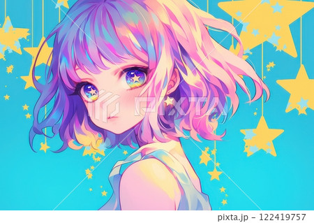 星に彩られたかわいい日本人の女の子(アニメ・マンガ・少女・異世界)