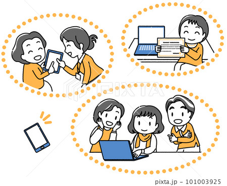 高齢者のスマホトラブル相談イラスト・スマホ教室