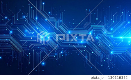 An integrated circuit board pattern with blue lines, a technological and digital background, representing the core of modern electronics