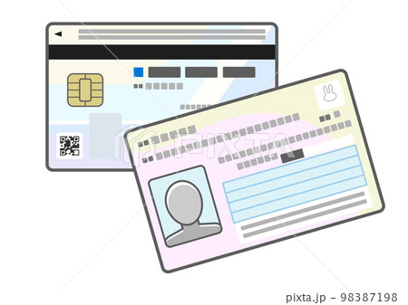 マイナンバーカード、免許証、保険証、パスポート身分証明書をイメージしたベクターアイコンセット