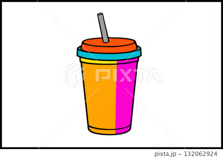 Colorful beverage cup illustration with straw and vibrant lid design for creative projects