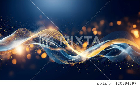 暗い背景に、流れるような光るラインと玉ボケの背景素材