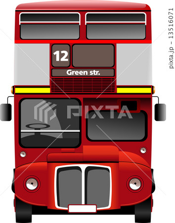 London double decker red bus cartoon illustration, English UK british tour front side isolated flat
