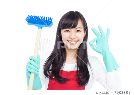 デッキブラシを持つ仲居 イメージ