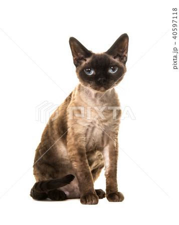 Pretty sitting seal point devon rex cat