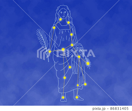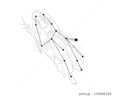 夜空に浮かぶ乙女座の人物と星座線のイラスト