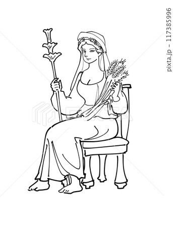 おとめ座の線画と星の配置、ギリシャ神話、女神デメテル