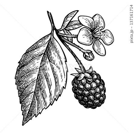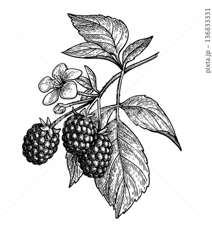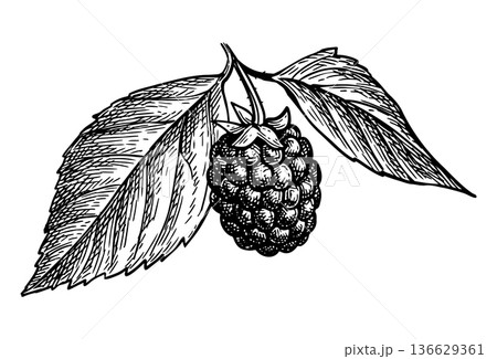 Blackberry. Berries and leaves. Ink sketch.