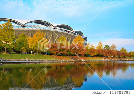 紅葉の新潟スタジアム(新潟県)