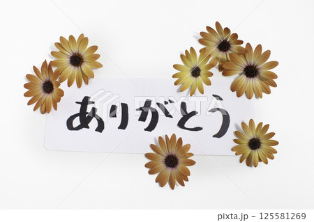 英語のメッセージを添えたピンク色のデイジーの切り花
