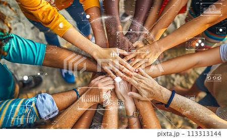デジタルインターフェイスと手を融合させた、人間の多様性とテクノロジーの調和。