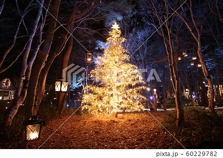 軽井沢 クリスマスツリー クリスマス 森 灯