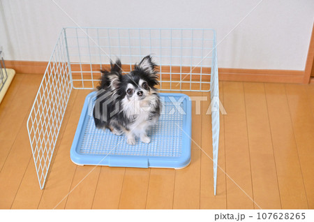 ワイヤーネットで囲ったトイレ トイレトレーニング 犬 犬用トイレ チワワ