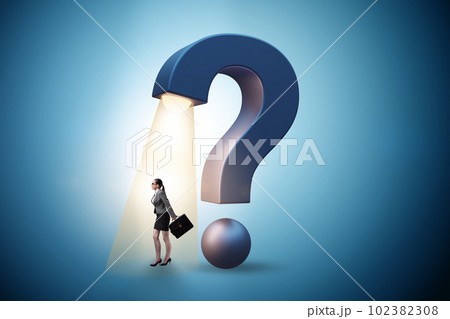 Concept with question mark and businesswoman