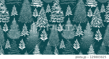 Christmas. Winter Forest pattern. Christmas trees of dots. Christmas seamless background. hand drawing. Not AI. Vector illustration