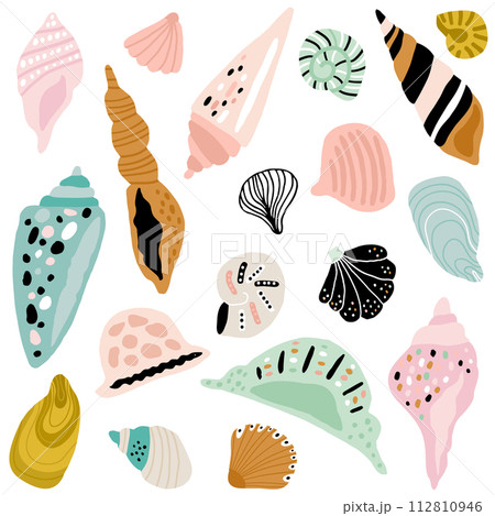 Set of seashells. Vector seamless pattern illustration