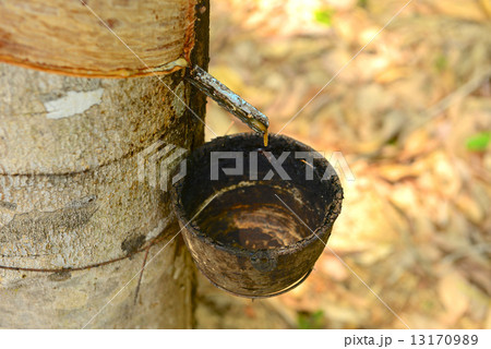 Milky latex extracted and rubber tree, Hevea Brasiliensis