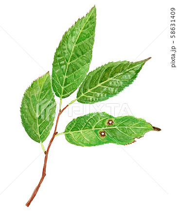 水彩で描いた杜仲 トチュウ 葉と樹皮