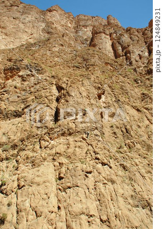 モロッコ、カスバ街道、トドラ峡谷、ロッククライミングをする人、トドラ川、断崖絶壁