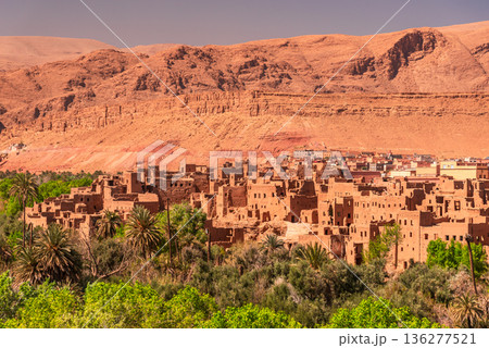 Tinghir, Morocco. Old berber architecture in Todra Valley and Oasis, Tagounsa village in Atlas Mountains.