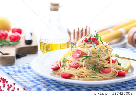 トマトとしらすの冷製スパゲッティーの画像素材(写真・イラスト) 1ページ目