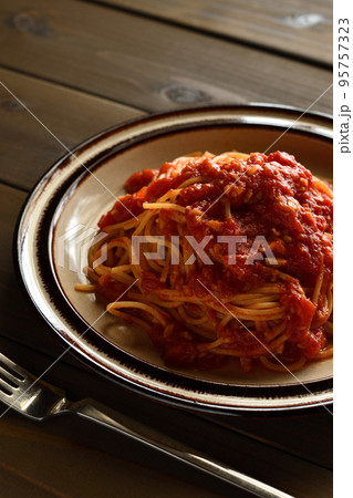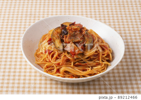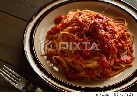 ナポリタン玉子敷 トマトソースのスパゲティ イメージ素材